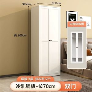 両開きドアワードローブ-幅0.7mの鉄ドアスチールキャビネットウォームホワイトホルムアルデヒドフリー+ドア2枚+組み立て