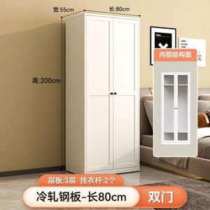 両開きドアワードローブ-幅0.8mの鉄ドアスチールキャビネットウォームホワイトホルムアルデヒドフリー+ドア2枚+組み立て