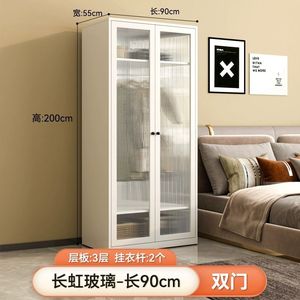 両開きドアワードローブ - 幅0.9mの長虹ガラスドア、スチールキャビネット、ウォームホワイト、ホルムアルデヒドフリー + 2ドア + 組み立て済み