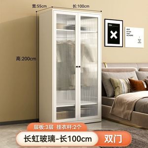 両開きドアワードローブ - 幅1.0mの長虹ガラスドア、スチールキャビネット、ウォームホワイト、ホルムアルデヒドフリー + 2ドア + 組み立て済み