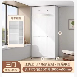 3ドアワードローブ - 幅1.176mの鉄製ドア、トップキャビネット付き、スチールキャビネット、ウォームホワイト、ホルムアルデヒドフリー+組み立て