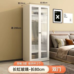 両開きドアワードローブ - 幅0.8m、長虹ガラスドア、スチールキャビネット、ウォームホワイト、ホルムアルデヒドフリー + 2ドア + 組み立て済み
