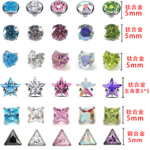 クロスボーダー F136 チタン合金ジルコニアリップネイルイヤリングアクセサリーピーチハート三角形交換歯口象嵌ジルコンスレッド