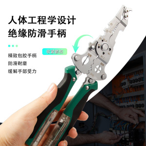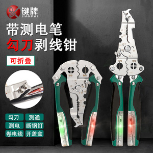 キー型多機能ワイヤーストリッパー、工業用グレードの商用電気技師専用ワイヤーストリッパー、ネジ締め、電気テストフック付きワイヤー圧着機