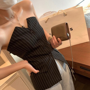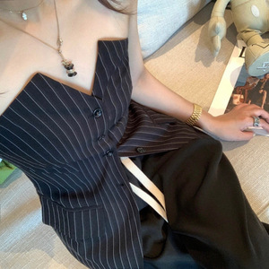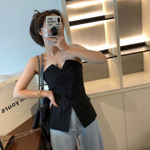ストライプスーツチューブトップ夏の女性のデザインオフショルダー美しいバックアウターウェア多用途トップトレンディ