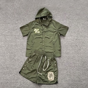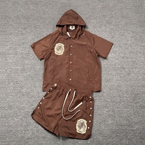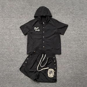 クロスボーダーヨーロッパとアメリカのトレンディなブランドセントレタータオル刺繍フード付き半袖シャツ男性と女性のハイストリートカジュアルショーツスーツ