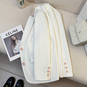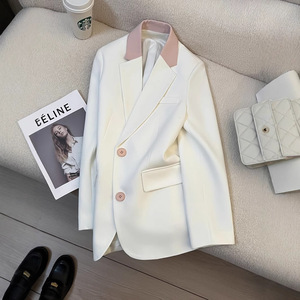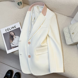 白色拼色休闲西装外套女高级感春秋韩版新款时尚设计个性气质西服