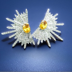 厳選された2024年個性の羽根がちりばめられたダイヤモンドピアス、誇張された輝くスターバーストピアス、エレガントなセレブのネットセレブ扇形ピアス