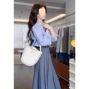 2025早秋新款套装女小众轻奢马甲修身衬衫高腰显瘦半身裙三件套潮