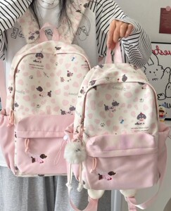 軽量カジュアルバックパック牛柄シンプルなお出かけ漫画犬スクールバッグ女子学生かわいい大容量バックパック