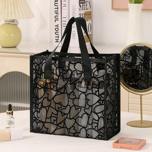 新しいメッシュ化粧品バッグ、愛のポータブル手持ち化粧品収納バッグ、高価値のポータブル旅行用トイレタリーバッグ
