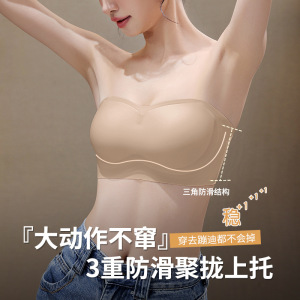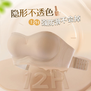 オリジナルリキッドファンデーション目に見えない透明なストラップレス下着女性の滑り止めプッシュアップシームレスチューブトップ露出防止バックブラ