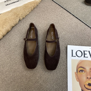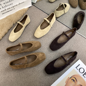 つや消し本革メリージェーンフラットシューズ 2025 春と秋のフレンチレトロシングルシューズワンラインバックルストラップ浅い口の小さな革靴女性用