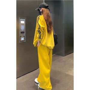 軽くて大人な年齢軽減秋服、新しいカジュアルスポーツウェアスーツ、ゆったりとしたアメリカンスウェットシャツとスウェットパンツ、年齢軽減レイジーツーピースセット
