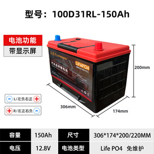 12V汽车启停锂电池大容量150AH电量显示冷启动蓄电瓶磷酸铁理