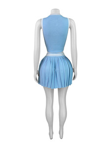 HR25030 ヨーロッパとアメリカのファッションレディースノースリーブへそ出しショートトップ + プリーツショートスカートスポーツファッションスーツ