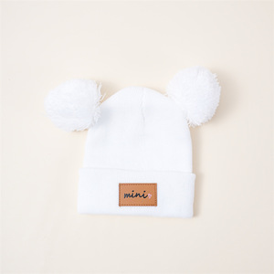 秋冬子供用ニット帽、男の子ベビーウール帽子、かわいいファーボール防寒暖かいレター、女の子ベビープルオーバー帽子