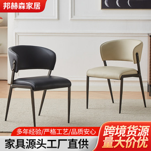 北欧现代简约皮制餐椅家用餐厅酒店软包餐椅舒适轻奢休闲靠背椅