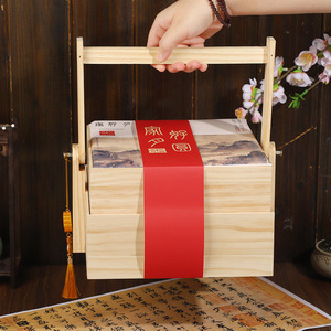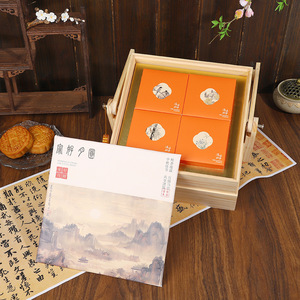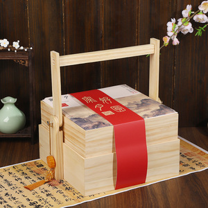 木製ポータブル二層ギフトボックス、高級月餅包装箱、ビジネスギフト、中秋節ギフト収納木箱