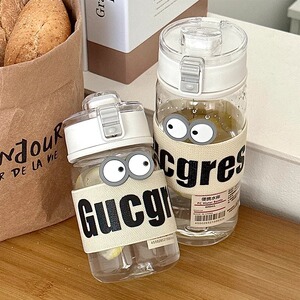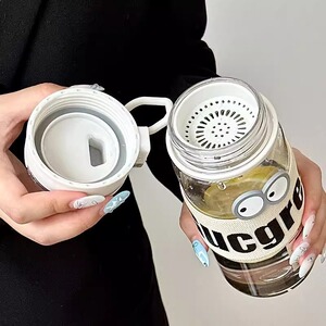 同款无印塑料水杯男女学生便携随行杯户外高颜值带茶隔带提手杯子
