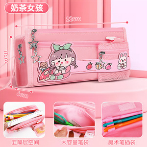 シングルペンケース ポータブルミルクティーガール/5層【ペン差し拡張版付き】