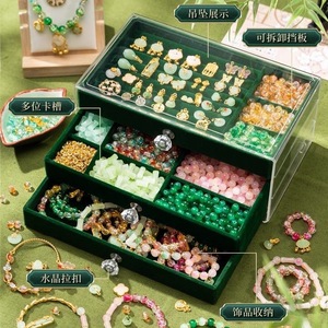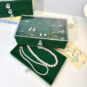 アンティークビーズ収納ボックスイヤリングネックレスリングオーガナイザーボックス透明グリーンベルベットジュエリーボックスジュエリーボックスギフトボックス