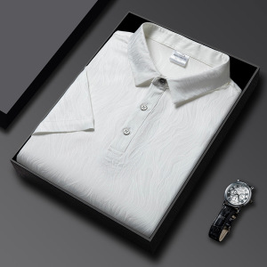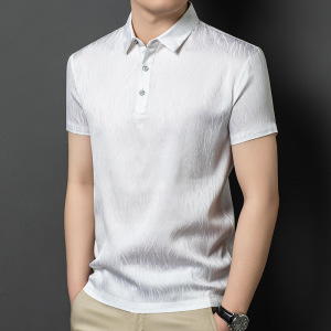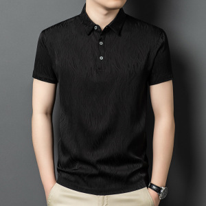 高端桑蚕丝短袖t恤男夏季冰感垂感POLO衫真丝透气宽松爸爸男装潮