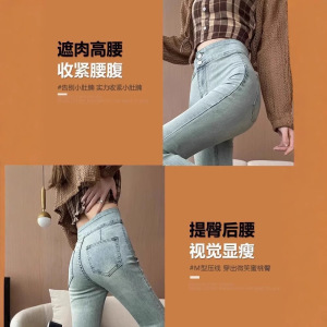 浅色喇叭裤2025年新款春夏款装高腰拖地设计感微喇牛仔鱼尾小个子