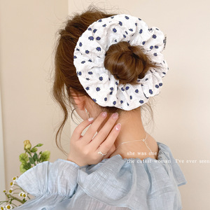 韓国風の青と白の花柄の女性用ヘアゴム、高弾性、髪を傷つけない、多用途のヘアロープ、耐久性のあるヘアアクセサリー、夏