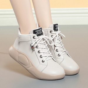 舒适单鞋子真皮高帮鞋中跟软底防滑百搭摇摇鞋女厚底增高透气鞋