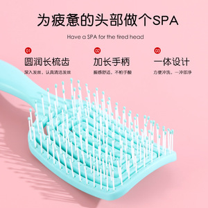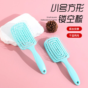新しいブルーの小さな正方形の中空コームマッサージヘアスタイリングコーム家庭用高頭蓋骨マッサージコーム