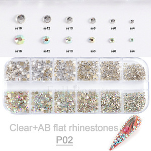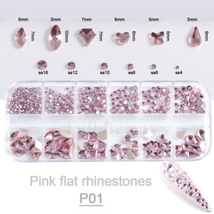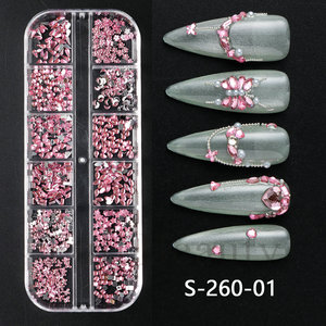 FULL BEAUTY クロスボーダー新ネイルアートアクセサリー 12 グリッド箱入り特殊形状平底樹脂ダイヤモンド混合装飾品
