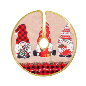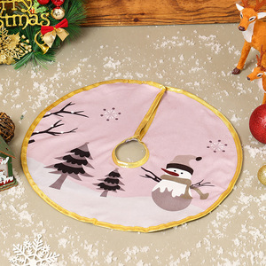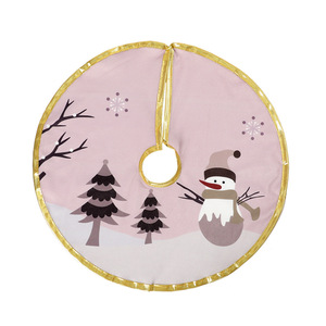 クロスボーダークリスマスプリントツリースカートクリスマスホリデーデコレーションクリスマスツリーエプロン雪だるまパターンプリントツリースカート卸売