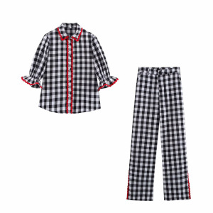 2025 新しいヨーロッパとアメリカのシンプルなレトロなコントラストチェック柄五分袖シャツとズボンのスーツ
