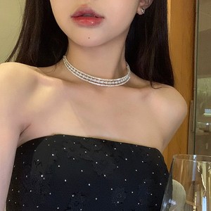 シンプルな二層ジルコンチョーカーパールネックレス女性の新しいニッチ鎖骨チェーンネックレスネックレス 2025 新しい