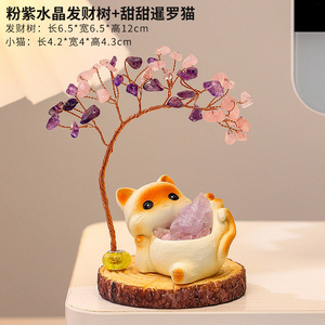 招き猫クリスタルフォーチュンツリー装飾品ホームリビングルーム玄関装飾ショップオープニング新築祝いギフト