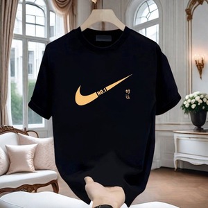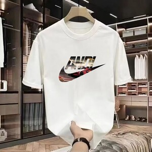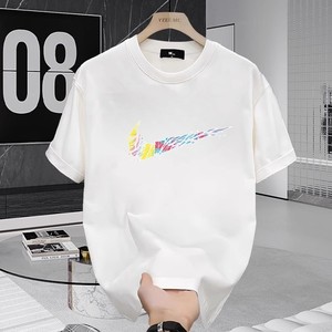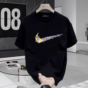 夏のトレンドブランド純綿チェックマーク半袖Tシャツメンズ韓国風カジュアル半袖ゆったり服メンズ万能Tシャツ