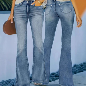 クロスボーダーアマゾン人気の2025パンツ、スリムフィット、マルチボタン、マイクロフレアパンツ、ウォッシュドレディースジーンズ