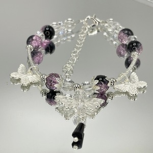 パープルエクスプローシブパールバタフライラブフラワーブレスレット
