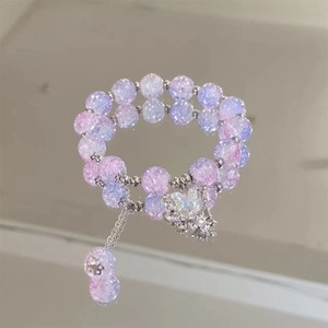 ピンクの爆発的なビーズの蝶の愛の花のブレスレット
