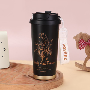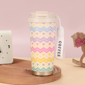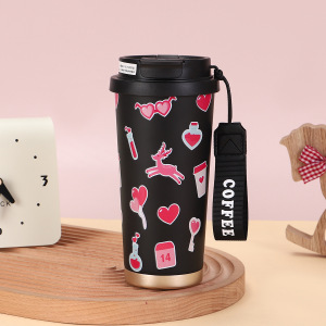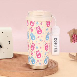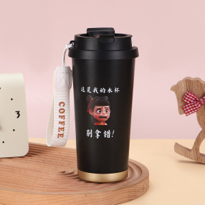 新款卡通双饮咖啡杯316不锈钢双层保温杯户外随行带提绳吸管杯
