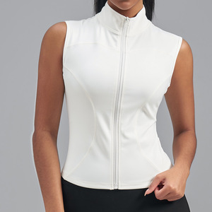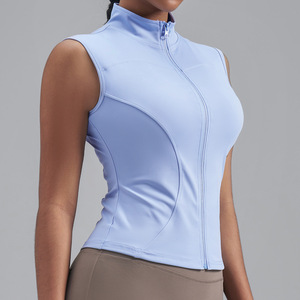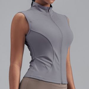 新しいスタンドカラーノースリーブジャケット弾性スリム通気性痩身スポーツジャケット