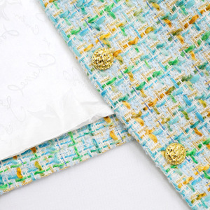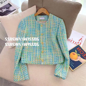 人気の小香風ジャケット、ミントグリーン、高級感、軽い高級ジャケット、レディースファッションショートジャケット、ツイード素材