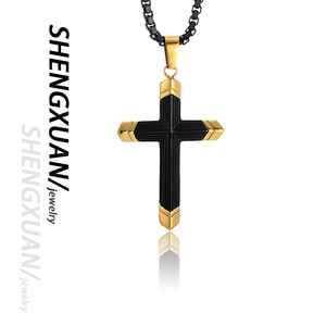 クロスボーダーで人気のチタン鋼製ツートンカラークロスネックレス 316ステンレスペンダント 欧米風信仰ジュエリー 卸売