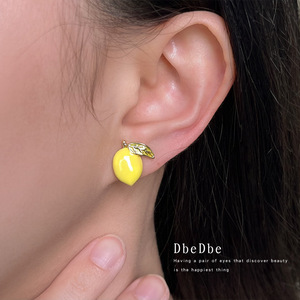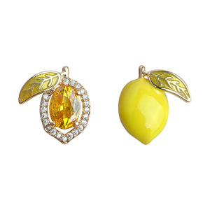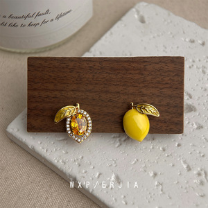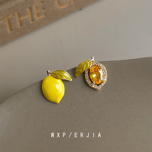 フレッシュでスイートな非対称レモン蚊よけイヤークリップフレンチライト高級マイクロ象嵌ジルコン気質多用途イヤリング女性用