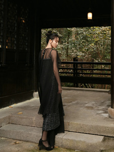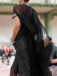 2025SS 春夏新作 長さと幅 100% マルベリーシルク装飾キャットウォークスタイルマルベリーシルクマントケープ 90084