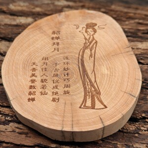 純粋な天然コースター工場卸売シダウッド断熱中国風古代風ティーコースター無垢材彫刻美しい女性のカスタマイズ