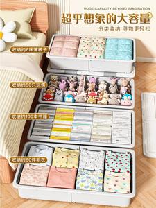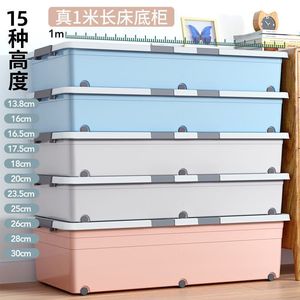 長方形の収納ボックス、狭くて長い、大容量、ベッドの下に長いストリップ、家庭用プラスチックボックス、ベッドの下に使用するカバー付きプラスチックボックス