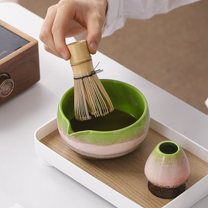 シンプルなグラデーションピンクの抹茶ボウル、陶器の抹茶セット、茶筅、竹抹茶ブラシ、100冊セット、7点セット