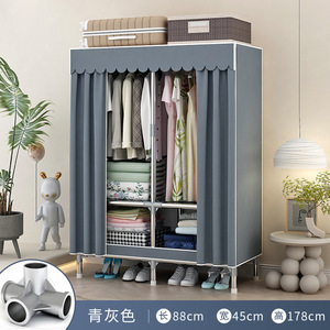 シンプルな家庭用寝室組み立て布ワードローブレンタルルーム収納アルミ合金ラック厚い床から天井までのワードローブ棚